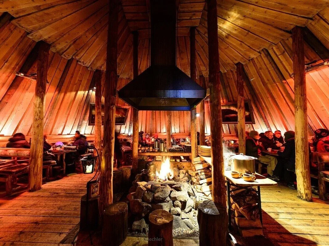 In winter, the snow-covered landscape becomes a peaceful and dramatic backdrop. Set up a heated Tentipi in the wilderness for a Northern Lights dinner experience. Combine this with snowmobile or dog sled transport, and welcome guests with firelight, warm drinks, and Arctic delicacies.